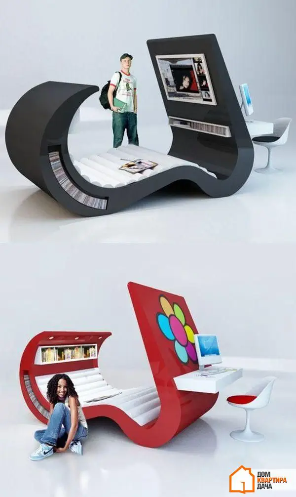9. Y aquí está la confirmación de que las camas pueden ser realmente de todas formas y tamaños. Este modelo se destaca por su diseño futurista y sus numerosos detalles, como una mesa, luz y estanterías.