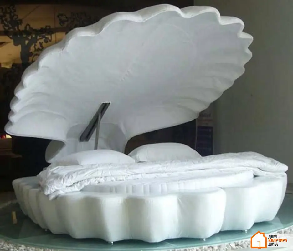 25.Esta increíble cama está hecha en forma de concha marina. Sea la perla de esta habitación, escondida cómodamente entre sábanas suaves y blancas.