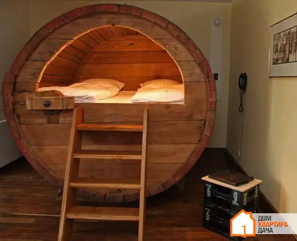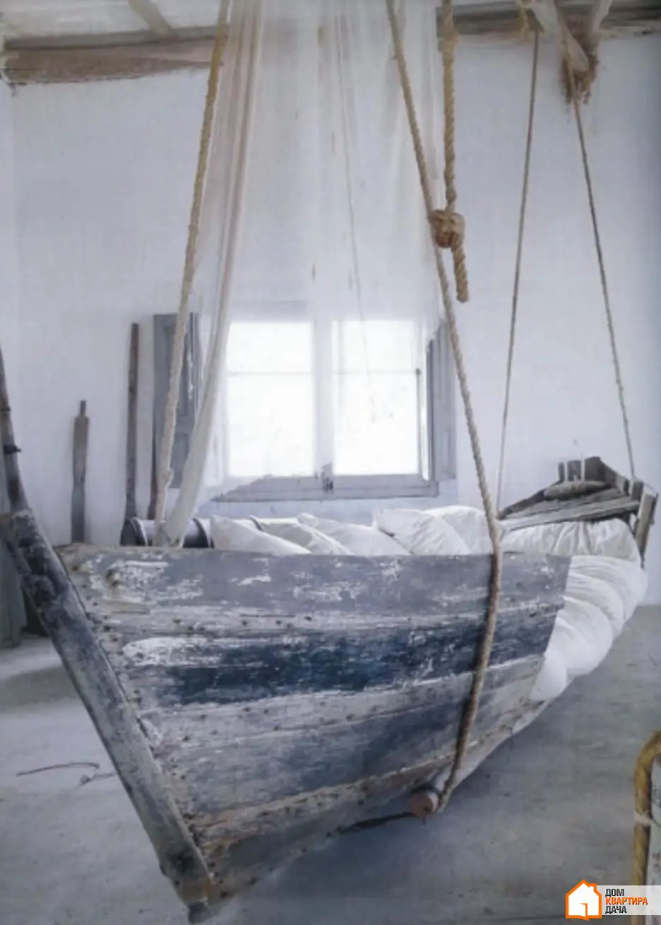 16. ¿Cree que el tiempo pasado en una embarcación que se balancea sobre la superficie del mar no fue en vano? ¿También está seguro de que nada es más propicio para un descanso tranquilo que una suave brisa marina? Entonces definitivamente soñará con esta cama en un barco. ¡Un diseño ideal para amantes del mar!
