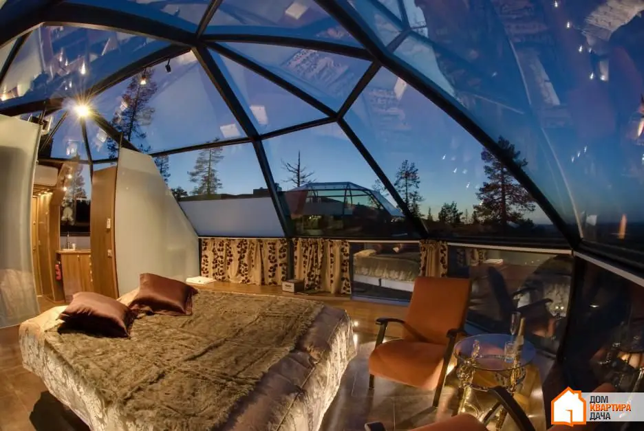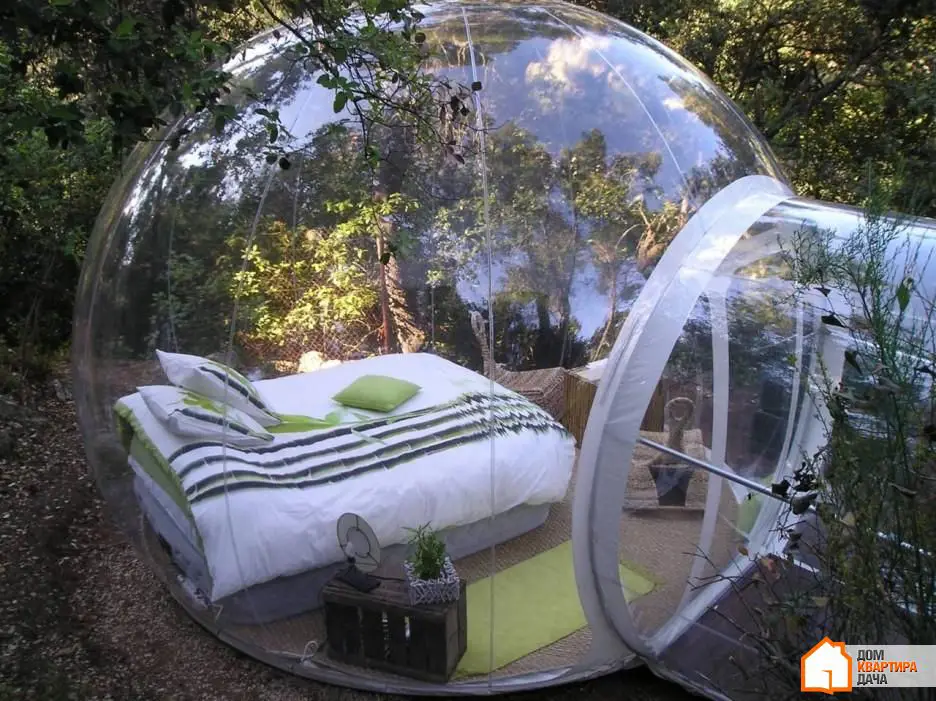 2. Si hablamos de dormitorios con vidrio transparente, este es otro diseño. Fue diseñado como una burbuja transparente que se ha quedado entre la naturaleza viva. Esperamos que los diseñadores hayan pensado cómo limpiar sus paredes.