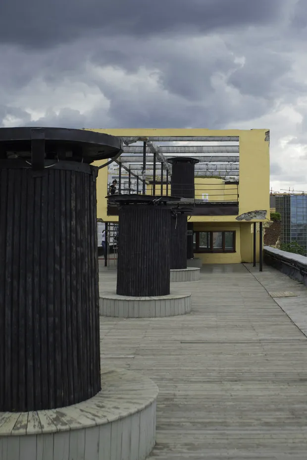 El techo operativo del estilobato tenía una función recreativa: los residentes podían descansar al aire libre e incluso hacer ejercicio. En su momento, la idea del «techo público» fue implementada por Moisés Ginzburg en el famoso «Edificio Narcomfina».