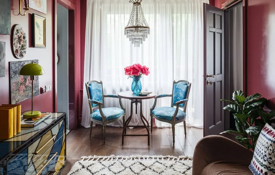 En una estúpida de 111 m², la diseñadora de interiores 'Pavel Polynov' utilizó un enfoque no estándar. Por ejemplo, escondieron la zona de lavado y planchado detrás de espejos, ampliando así el espacio.