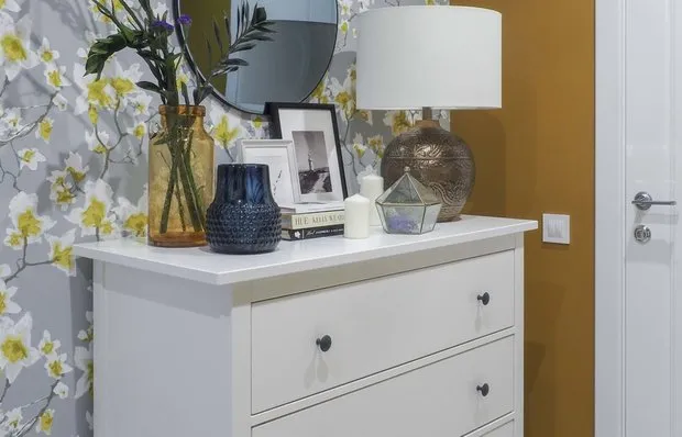 - No olvides el decorado. Crea un espacio que sea tanto elegante como funcional, donde te sientas cómodo. Elige los tonos favoritos para decorar las paredes, canastas bonitas para ropa y una mesa de planchar que coincida con el color del interior. También puedes decorar la habitación con carteles o cuadros, macetas con plantas o jarrones decorativos.