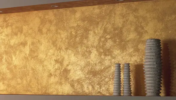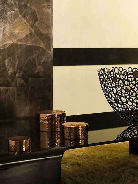 «IMPERIALE» (Imperiale)This modern type of Estuco veneciano includes gold pigment. With it, traditional decorative coating not only reflects sunlight but also exudes luxurious gold sheen! The surface is semi-transparent, and the color palette includes dozens of shades. 'IMPERIALE' fully justifies the marble surface as a 'shining stone'.