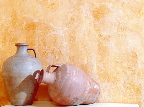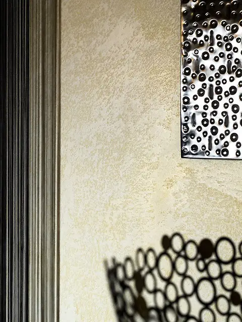 Today, traditional lime plaster has been slightly modified: synthetic binders or polymers (such as acrylic) are added. Natural colorants are now often replaced with synthetic ones. However, this formulation is only an imitation of authentic 'Estuco veneciano', as only a natural composition provides true marble-like sheen and light play. Of course, animal blood is not used as a pigment — modern paint may be used instead, but we insist on natural materials: marble chips, stone powder, and lime.