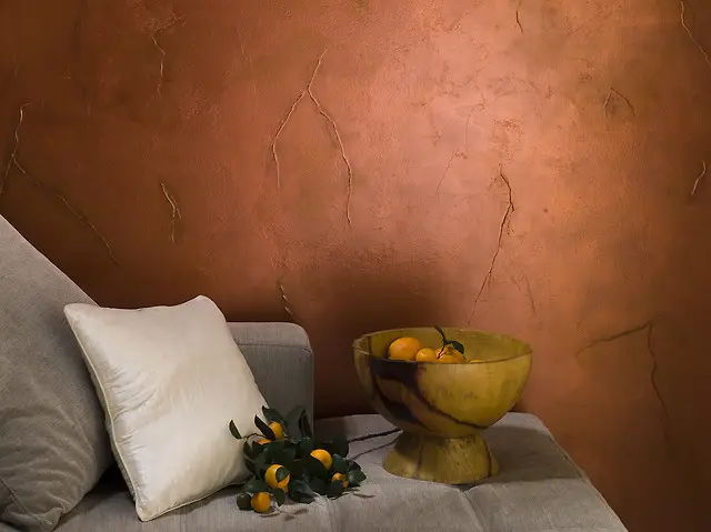 This is Estuco veneciano with a polished marble effect and terracotta inclusions.