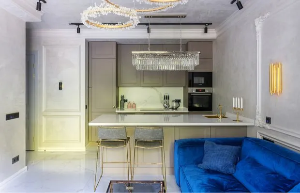 El segundo paso es planificar la zonificación. Esto es especialmente importante en espacios multifuncionales combinados — cocina-salón, despacho-dormitorio, etc. Esto lo logran con la zonificación visual mediante particiones decorativas.