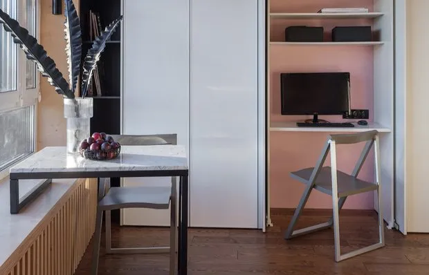 Soluciones increíbles en una mini-estudio: armario-cabinet, guardarropa oculta y muchas ideas geniales más