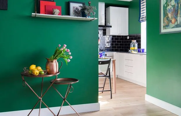 Luminosa unidad de 28 m² con paredes de color verde oscuro