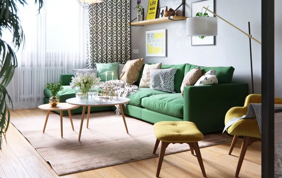 Sofá verde en el diseño de interiores: 10 salas estilizadas