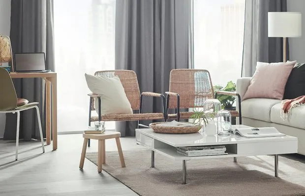 Los radiadores frente a las ventanas están cubiertos con pantallas, que también funcionan como tableros plegables. Esto permitió organizar dos zonas de trabajo que no ocupan espacio cuando no están en uso. Uno de los tableros se considera como comedor, ya que está ubicado en la zona de cocina.