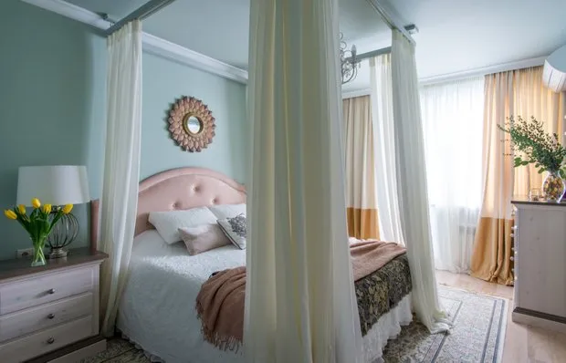 Textiles y decoración: manta, Tkano; almohadas, Filimonova Textile; ropa de cama, Linen Textile; arte digital, Mary Sever; abstracción, Olesea Maznya; decoración, espejos, jarrones, velas, todo — Moon Stores; alfombra, Kover Store