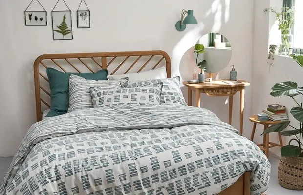 La cabecera de la cama se hizo con tablas envejecidas, convirtiéndose en una estantería para almacenar decoraciones y libros. Una solución económica pero impactante.
