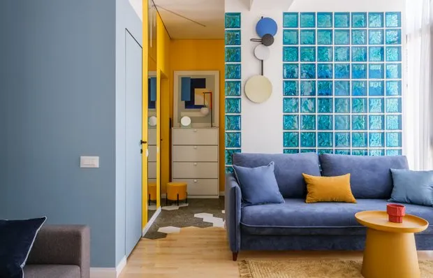 Eurodoble elegante de 39 m² con mueble colorido y armarios integrados
