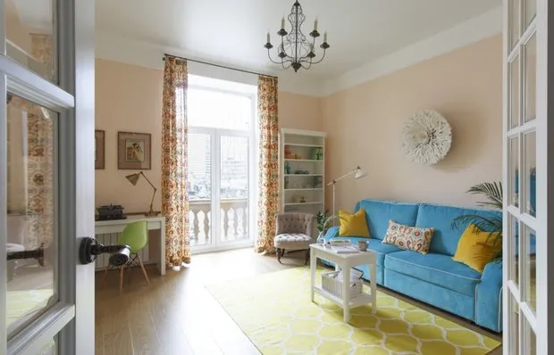 La diseñadora Vladа Vologirova decoró una vivienda europea para su familia. El apartamento se compró con una planificación ya modificada legalmente, por lo que no fue necesario cambiar nada. Sin embargo, hubo espacio suficiente para ideas decorativas: por ejemplo, se hizo una lámpara de maniquí y la televisión se convirtió en la "estrella" de la sala de estar.
