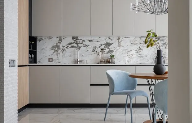 El equipo de diseñadores del estudio Freya Architects decoró un estilo moderno y elegante para una familia joven con hijo. Para alojar cómodamente a los clientes en 68 metros cuadrados, realizaron una reforma: convirtieron el apartamento en una casa de tres habitaciones con cocina separada.