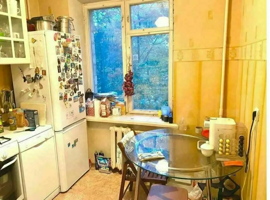 La cocina era pequeña, de 5.9 metros cuadrados. El pasillo original provenía del vestíbulo, por lo que no fue posible aumentar la funcionalidad. Estaba muy apretado y poco cómodo.