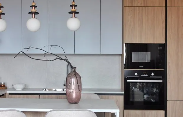 En el conjunto de la cocina solo hay un armario alto, en el que se integró la tecnología doméstica: máquina de café, horno y microondas.