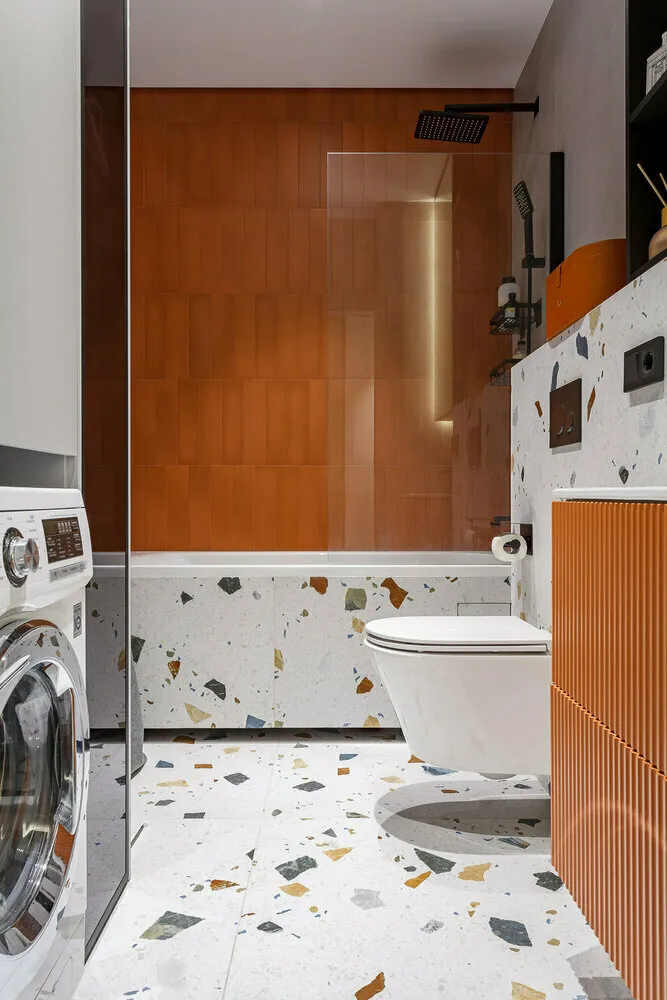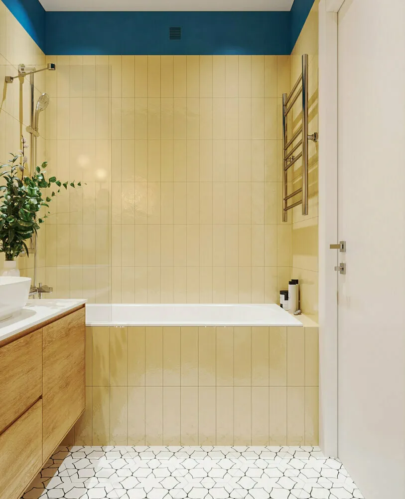 Diseño: QuadrumAborda el planificación del presupuesto con sabiduría y prevé los detalles importantes aún en la etapa de diseño del baño. Tomemos como ejemplo el suelo caliente. Muchos creen que calentar los suelos es un gasto innecesario o temen que los suelos eléctricos sean inseguros. En realidad, es una inversión a largo plazo en tu propio confort: en el baño disminuye el nivel de humedad, te preocupas por tu salud y no te pones pies descalzos sobre el suelo frío, creas un clima microambiental cómodo. Tampoco debes preocuparte por la seguridad: el montaje ocurre en la etapa de la losa, por lo tanto, el elemento eléctrico está completamente aislado.