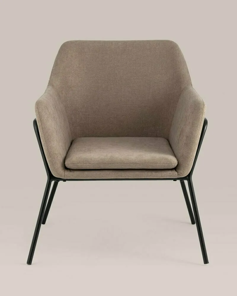 El sillón es útil no solo en la sala de estar. En la habitación se necesita para una zona con escritorio de baño o un pequeño espacio para descanso, donde puede relajarse leyendo su libro favorito. El sillón beige con respaldo ergonómico y asiento blando garantiza comodidad en uso, y su diseño elegante con patas delgadas no sobrecargará el interior. El revestimiento está hecho de shantung, los altos reposabrazos garantizan comodidad adicional.