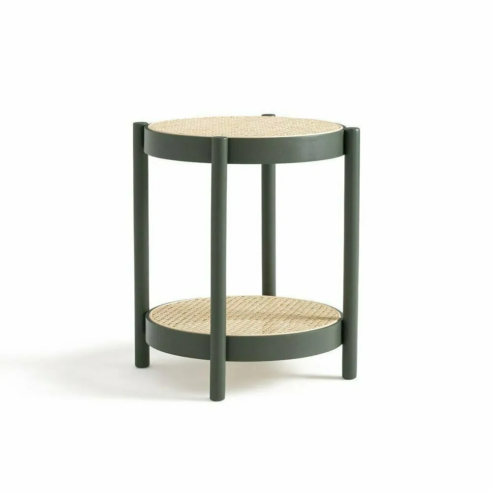 Muchos están acostumbrados a las simples mesas de noche, pero aquí se usa una combinación no estándar de madera de abedul y rattan entrelazado. Encuentre una solución para el estilo escandinavo o tropical. Recomendamos comprar dos media para simetría, y con sus dos superficies puede colocar fácilmente los artículos que deben estar al alcance (libros, teléfono) y decoración (por ejemplo, una pequeña planta).