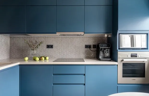 La familia es grande y la cliente pasa mucho tiempo en la cocina. Quiso que este espacio fuese no solo cómodo, sino también bonito. El mobiliario de cocina fue planeado basándose en todas las preferencias de la familia, teniendo en cuenta los utensilios existentes y los electrodomésticos. Se logró crear una encuadre útil en la encimera para colocar el tostador, la batidora y otros artículos que deben estar siempre a mano.