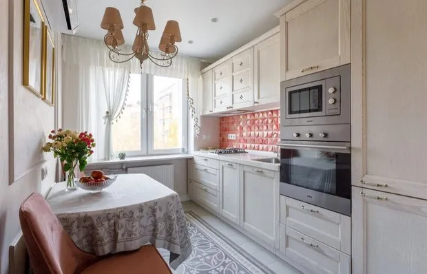 La diseñadora Tatiana Rticsheva transformó una cocina típica en un apartamento de cuatro habitaciones donde vive una familia con tres hijos. Se trata de una vivienda usada, y tras comprarla los clientes tuvieron que vivir allí unos años, por lo tanto al comenzar el trabajo con el diseñador ya sabían exactamente qué deseaban. La cliente soñaba con una cocina luminosa y espaciosa, al mismo tiempo quería simplificar la limpieza del apartamento y hacer que el diseño fuese práctico y duradero.