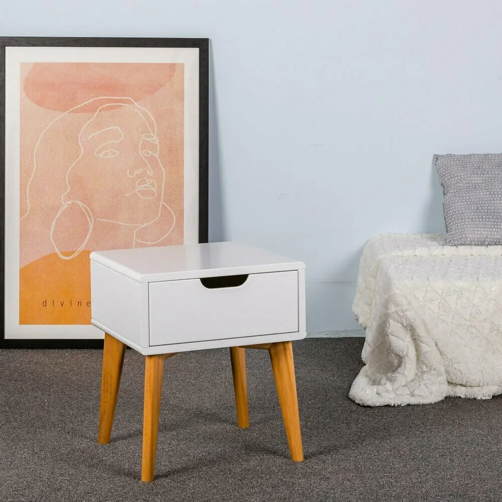 La mesilla de TV fue fabricada en fábrica según el boceto de los diseñadores. Resultó ser un modelo clásico con una interpretación pop-art. Todas las perillas son diferentes. Para la terminación se usaron tres materiales: madera, concreto y pintura amarilla.