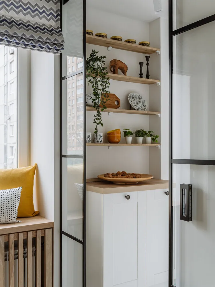 Los diseñadores de la estudio Carton Group decoraron una vivienda de tres habitaciones para una familia joven con un niño en una casa de ladrillo construida en 1970. Aquí estaba la planificación obsoleta con techos bajos y un remodelado "destruido". Por lo tanto, los cambios fueron significativos: la cocina se unió con la sala de estar, el conjunto se instaló en forma de letra P y se previeron particiones correderas ya que en la casa hay gas.