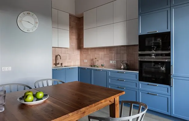 La diseñadora Cristina Chemelova colocó con maestría varias zonas funcionales en una superficie limitada. La atención de la cliente se centró en una habitación de dormir completamente aislada, por lo que la opción de estudio no se consideró. Como resultado, la reconfiguración exitosa del apartamento ahora permite dos zonas independientes: una cocina- sala de estar acogedora y una habitación de vida cómoda.