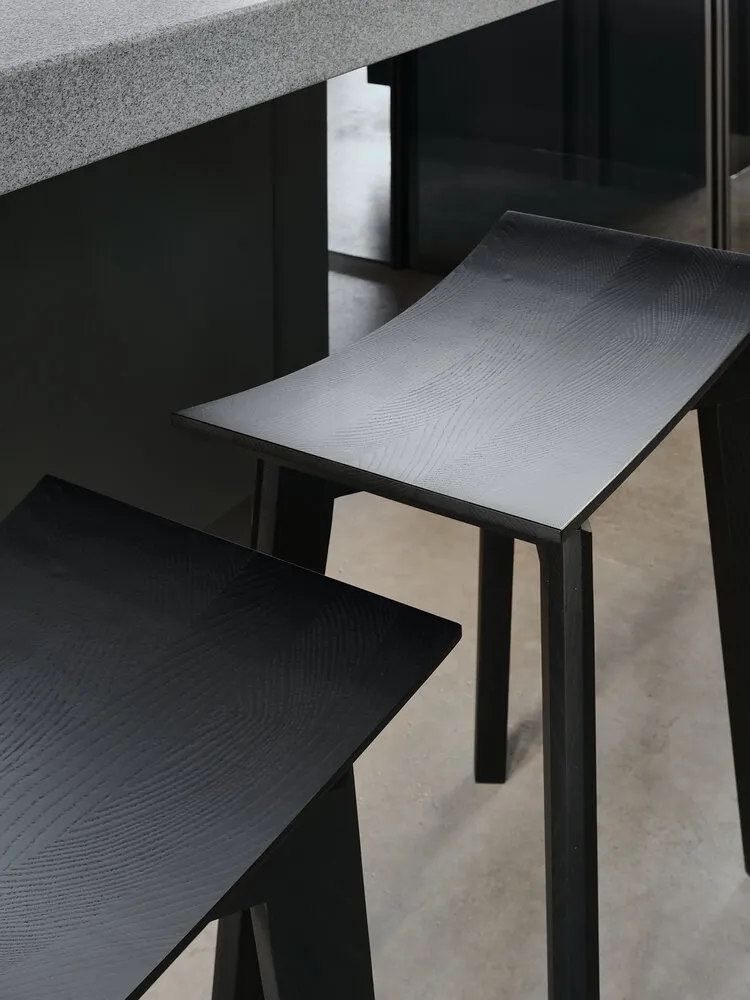 Fachadas monolíticas y minimalistas de la mobiliario representan la filosofía del espacio moderno y tecnológico donde la funcionalidad y ergonomía son prioritarias.