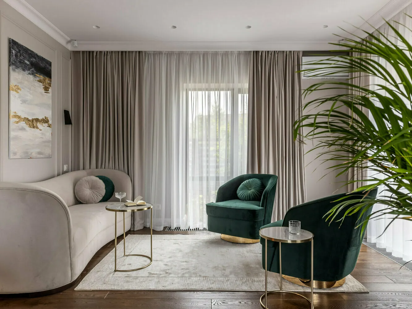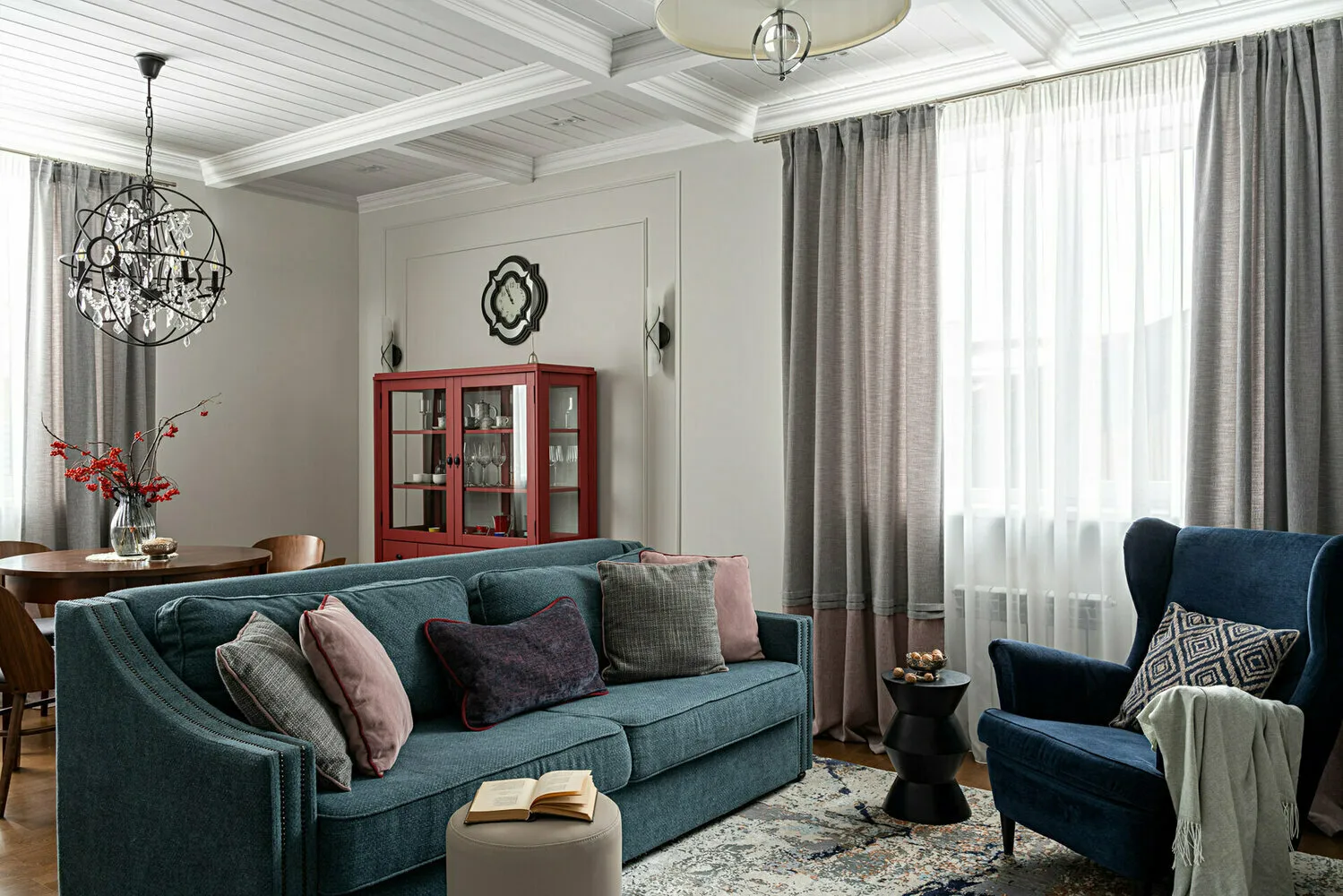 Una joven familia se dirigió al diseñador Oksana Agaponova: ella tenía que crear un interior con elementos de estilo inglés y americano clásico en una casa de dos pisos. La planificación presentaba dificultades: el primer piso estaba dividido por una pared estructural en dos partes desiguales, las habitaciones eran pequeñas, pero el diseñador logró resolver la tarea.