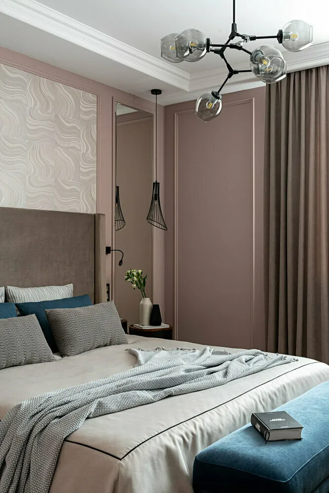 En el interior se utilizaron trucos inusuales — combinación de latón natural y azulejo barato, objetos vintage y producción según los bocetos del diseñador. Para decorar las paredes eligieron pintura: esto es conveniente y no sale del estilo. En la habitación principal se añadieron papel pintado con acentos — un rollo transformó la habitación. En los baños, parte de las paredes se pintaron para mantener la atmósfera del cuarto: el azulejo solo se usó en las zonas húmedas. La habitación infantil se dividió en tres zonas funcionales — de sueño, almacenamiento y actividades.