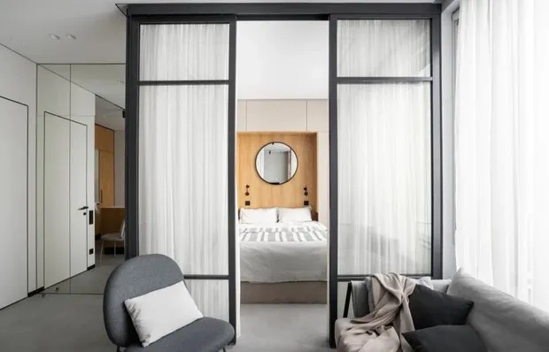 Diseño moderno de apartamento de dos habitaciones de 54 m² con tonos claros