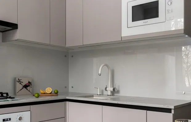 La diseñadora Julia Sologubova decoró una amplia y funcional cocina-sala de estar en apartamentos del edificio que alguna vez fue una fábrica de té. A lo largo de una pared colocaron el mueble de cocina, frente a él una zona cómoda con sofá transformable. Esto es muy conveniente cuando llegan invitados.
