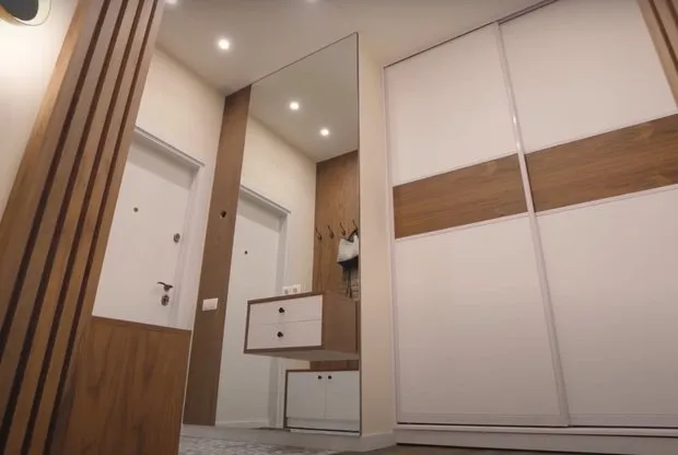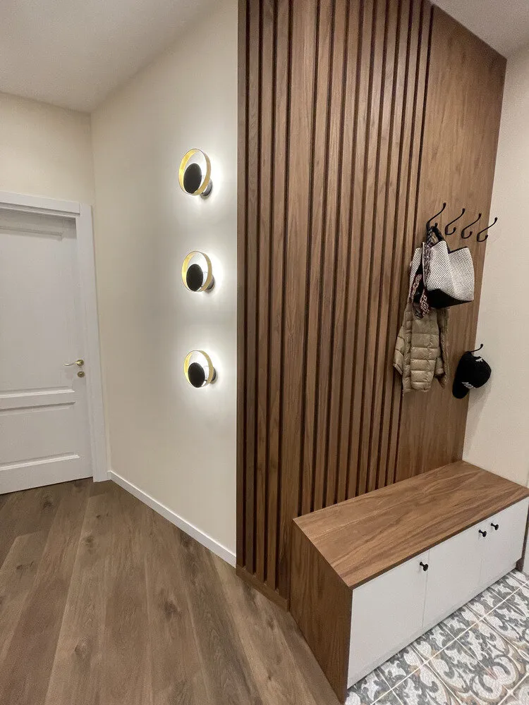Con los paneles de pared puedes jugar con contrastes (por ejemplo, una decoración clara y la textura de la madera), pero su uso también puede ser más práctico: si necesitas ocultar un elemento constructivo del edificio y decorarlo con el color del vestíbulo, los paneles de pared te ayudarán a lograrlo.