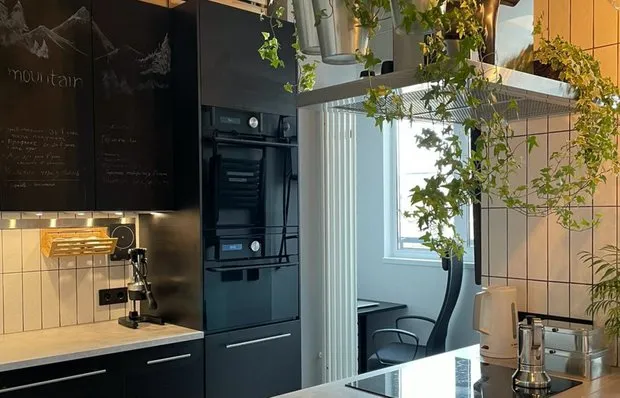 ¿Qué hacer si en una cocina mini no hay suficiente espacio? Se puede llevar parte del electrodoméstico al armario del vestíbulo. Así fue como se hizo aquí: se ordenó un armario con una sección para ropa de abrigo y la segunda sección se adaptó para una microondas y una cafetera con tetera.