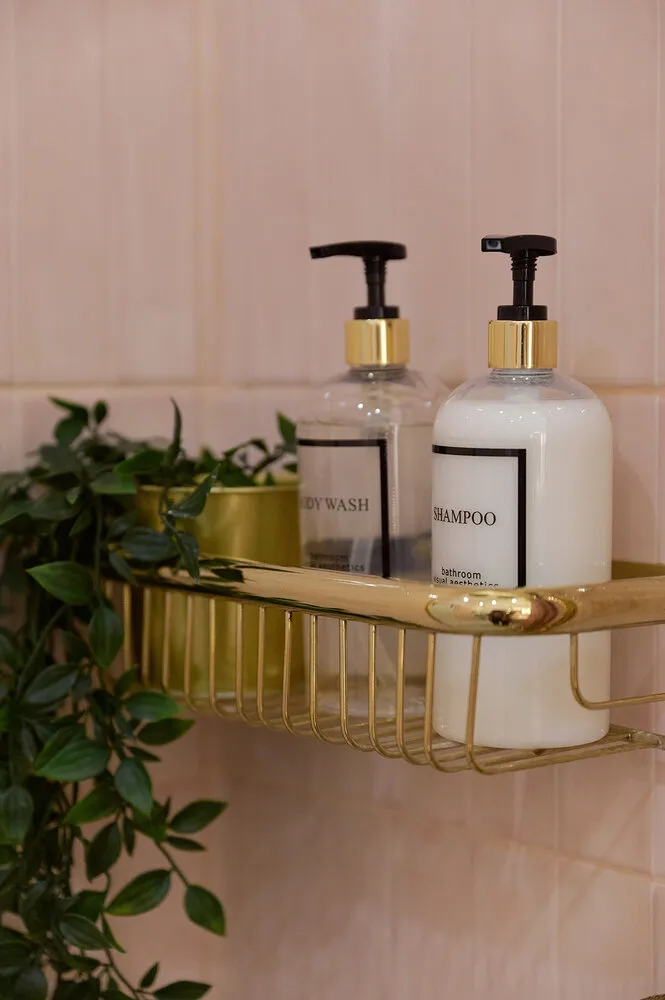 Nuestra heroína presta mucha atención al orden y organización del almacenamiento: todos los líquidos los vierte en dosificadores, eliminando el ruido visual. En este baño no hay champús coloridos ni geles para ducha: aproximadamente una vez al mes Julia simplemente los vuelve a verter en bonitas botellas. Esto no es tan difícil: basta con hacerlo una vez y después se convierte en un hábito.