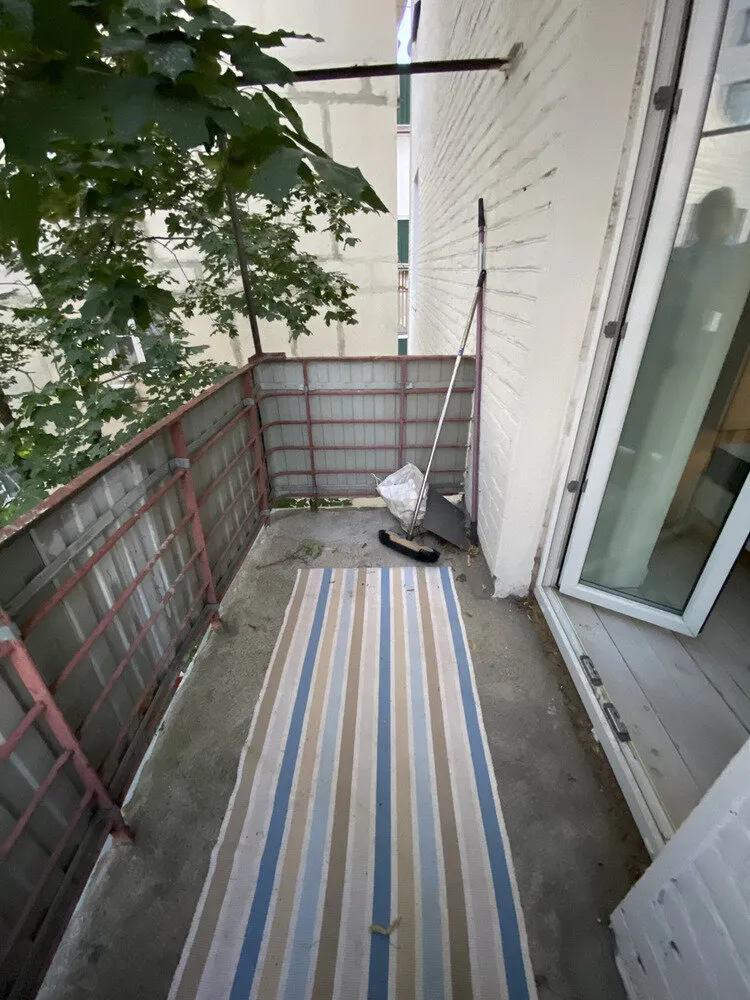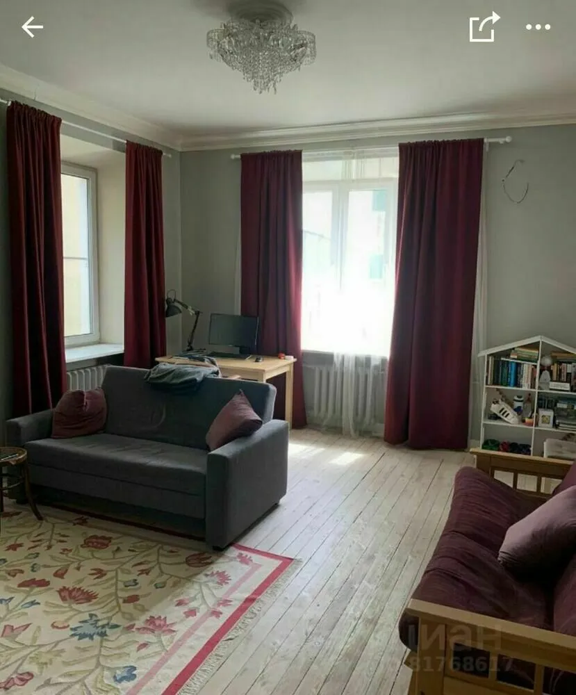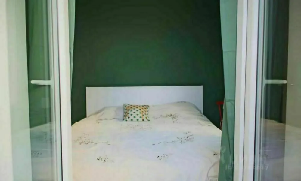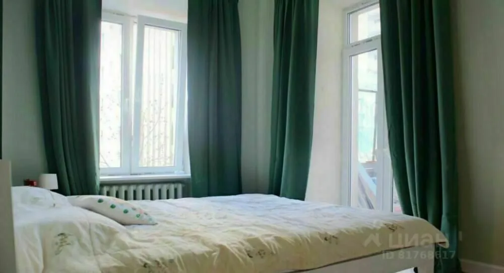 La habitación del dormitorio es muy pequeña, las paredes estaban pintadas con un tono verde y se añadieron cortinas oscuras de color verde, lo que creaba una atmósfera poco cómoda. El dormitorio tiene acceso a un balcón.