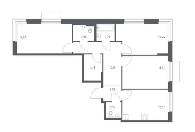 El Grupo "Avión" ofrece una solución de distribución lista para una vivienda familiar de dos habitaciones en el complejo residencial "Nuevo Vnukovo". En la distribución se mantiene una geometría de habitaciones cómoda: el visitante entra en el vestíbulo y desde allí a la sala de estar y cocina, sin pasar frente a la habitación dormitorio y la habitación del niño. Cerca de la entrada hay un baño de invitados, y el baño y el cuarto de baño privado están más cerca de la zona privada de las habitaciones dormitorio. Una vivienda con esta distribución es fácil de adaptar a las necesidades de los que viven: las dimensiones de las habitaciones y la gran cantidad de ventanas permiten una buena división espacial y colocación racional de mobiliario.