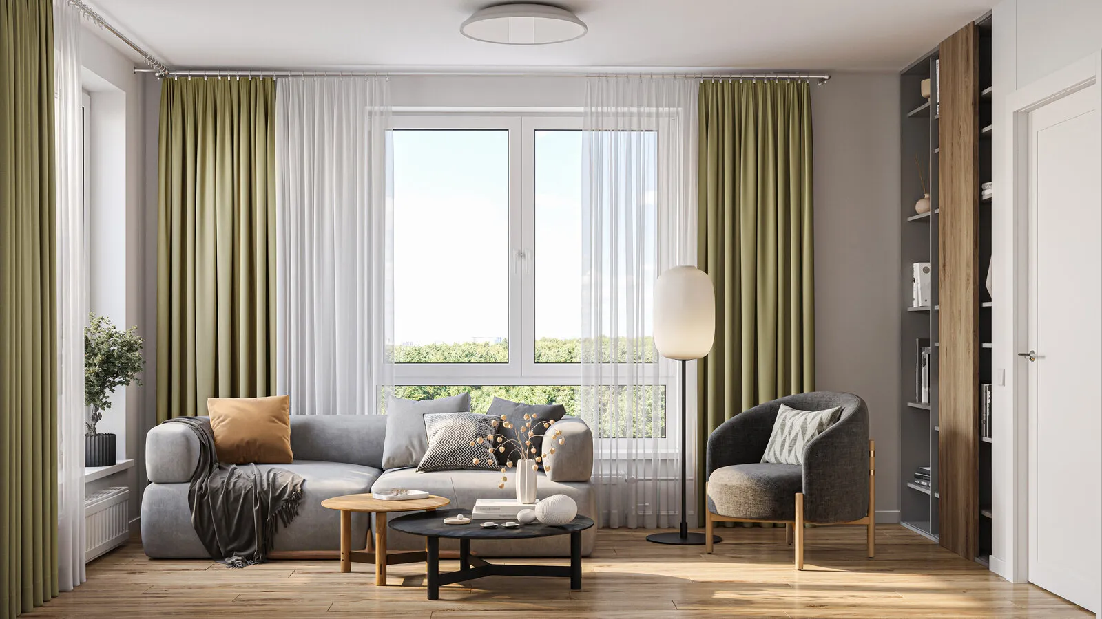 El uso eficiente del espacio es un factor clave al elegir vivienda, por lo tanto, es importante considerar los lugares para almacenar cosas. Una gran cantidad de artículos a disposición abierta genera una sensación de congestión y quita metros útiles. Por lo tanto, en la sala de estar y cocina se recomienda planear la presencia de armarios con fachadas cerradas, en las habitaciones infantiles - estanterías abiertas y vitrinas, en la habitación dormitorio - un guardarropa independiente.