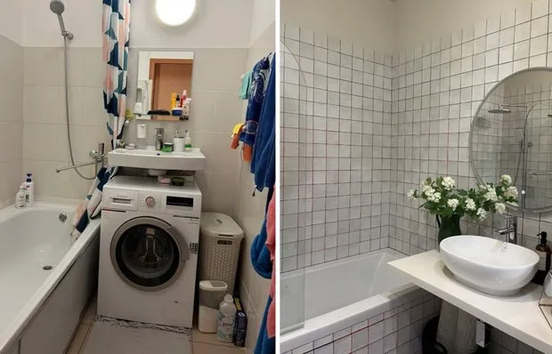 Antes y después: de un baño pequeño separado a un bonito y luminoso diseño
