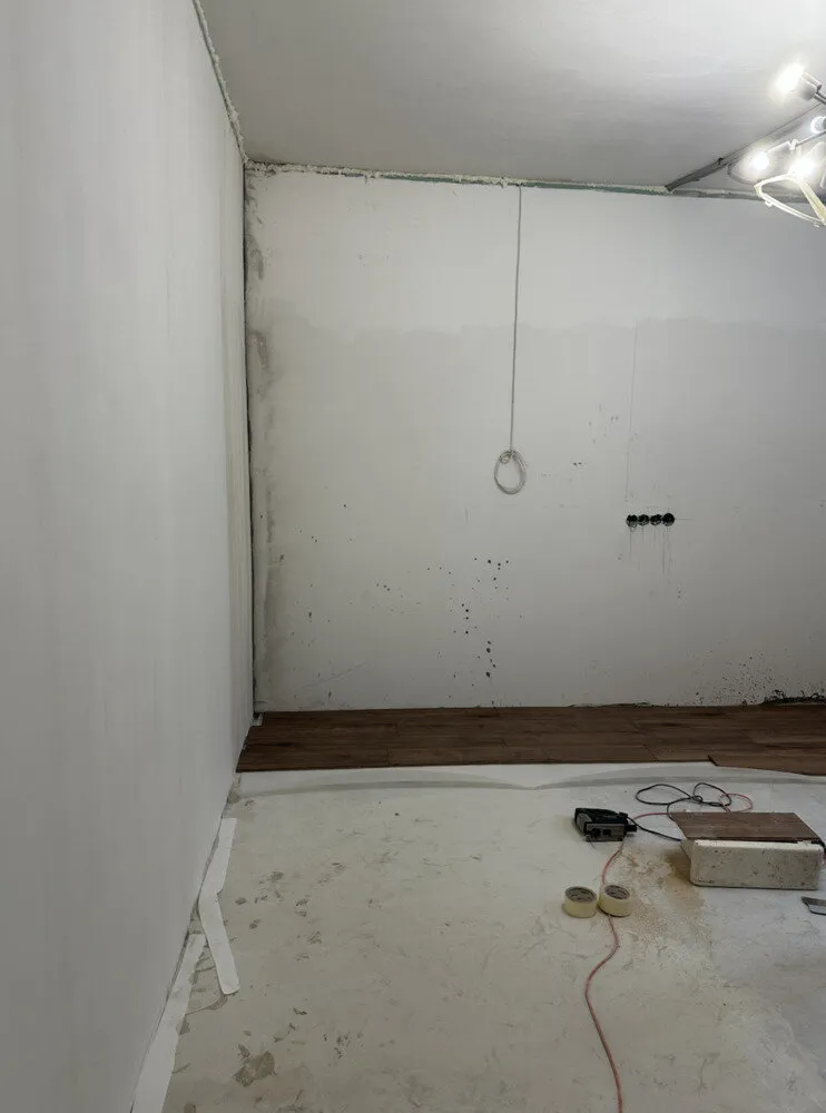 Un error muy común es instalar solo "un enchufe" sin entender cómo se usará. Nosotros tomamos otro camino: planificamos la electricidad según escenarios de vida, no solo simetría en el dibujo. En la habitación cada lámpara tiene su propio interruptor y enchufe. En la cocina los enchufes están integrados directamente en el alféizar - esto es típico de Stalin, las paredes son gruesas y hay espacio suficiente.