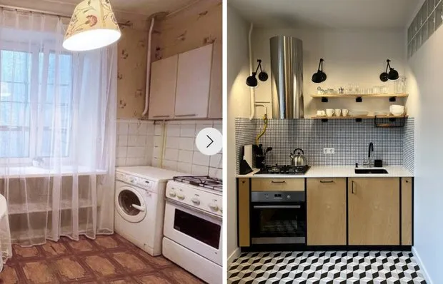 Antes y después: transformación asombrosa de la cocina en un fondo antiguo