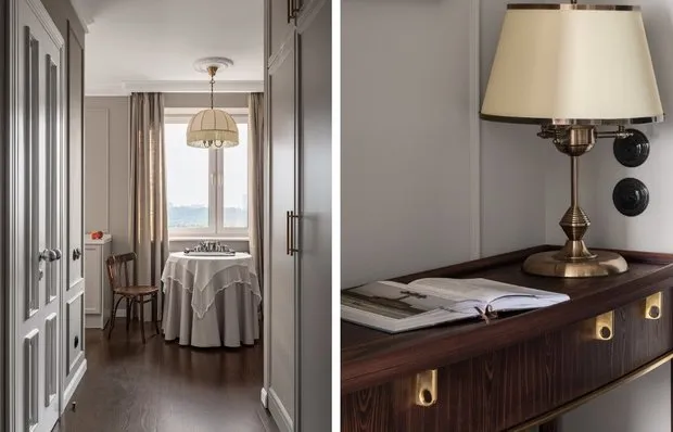 El interior de un apartamento moscovita en estalinismo es obra del diseñador Alena Skovorodnikova. Su tarea era conservar la sensación de un espacio "vivido" que no pierde encanto con el tiempo. En lugar de paredes perfectas — una textura artística con efecto de envejecimiento, en lugar de nuevos elementos — hallazgos restaurados y muebles vintage de Europa. Todo esto enmarcado por techos altos, molduras y parquet que se conservó desde siglos pasados.