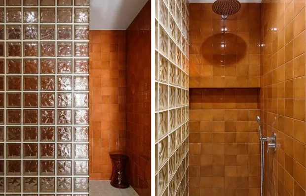 Baño de 6,9 m²: cómo los bloques de vidrio y los colores crearon un efecto asombroso