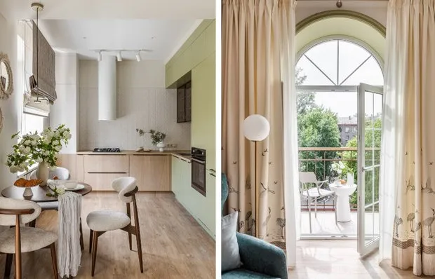 El diseño de esta cocina en estalinca está pensado hasta los mínimos detalles. La principal meta del diseñador, Elena Zufarova, fue crear un espacio moderno que combine arte y recuerdos personales, logrando que el interior se vea acogedor, cómodo y agradable.