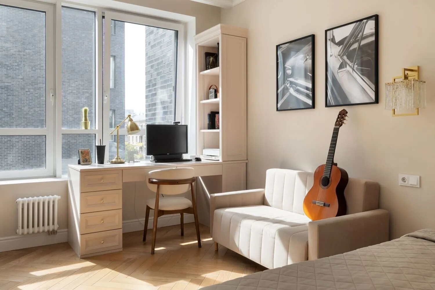 Nuestra heroína Nadia se sumergió por completo en la decoración de su apartamento de tres habitaciones en una nueva construcción. Vive allí con su familia: esposo y tres hijos. «Fue difícil, pero muy interesante. Yo me encargué de todo el proceso: tuve que ser no solo directora del proyecto, sino también diseñadora», comparte Nadia. «Al final logramos crear un espacio donde cada uno se siente cómodo y a gusto».