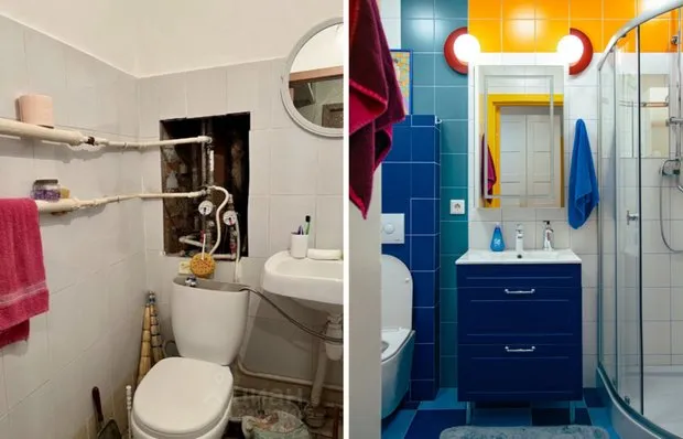 Antiguo fondo: baño antes y después de una transformación atrevida