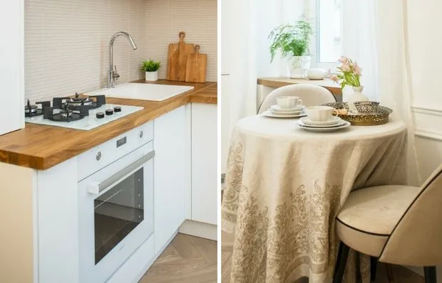 Una cocina diminuta pero muy acogedora de 6 m² en una casa de la era prerevolucionaria